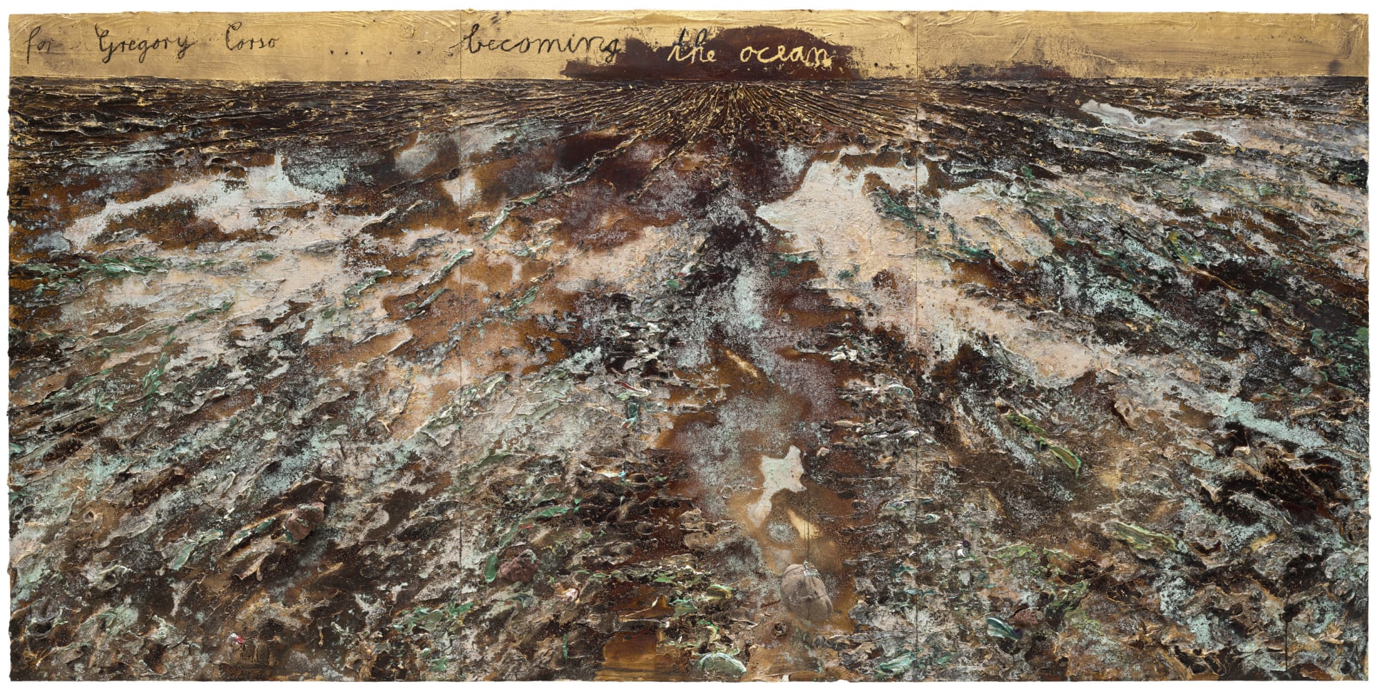 Lead Image: Anselm Kiefer, “Becoming the ocean, for Gregory Corso,” 2024; emulsion, oil, acrylic, shellac, sediment of electrolysis, gold leaf, stones, and annealed wire on canvas; 110 1/4 inches x 18 feet, 8 7/16 inches; Private collection; © Anselm Kiefer, Photo: Nina Slavcheva living networks within them. Cities and nature need each other.