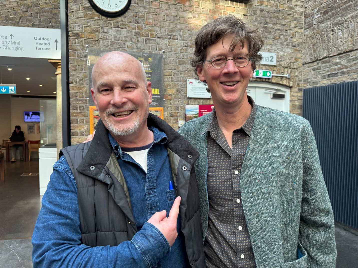 Manchán Magan (on right) with Colm Ó Snodaigh of Kíla at the IFI premiere of “Ireland and Its Aromatic Heritage.”